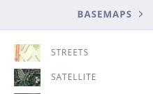 Changing the basemap styleThe "Basemaps" panel allows a user to show various geographic information or landscape imagery as a background layer.