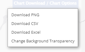 Chart OptionsThe Chart Options button contains various download options for a convenient way to save the data displayed in the chart. There is also an option to change the background transparency. Clicking Change background transparency will toggle the background transparency between transparent and opaque.