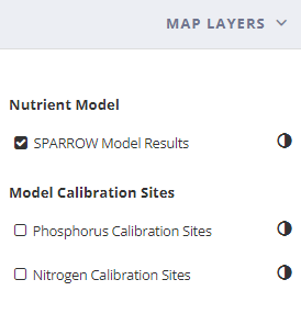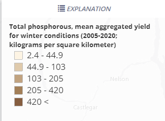 Using the ExplanationThe expanded Explanation box contains a legend for the nutrient model results currently displayed on the map. The legend updates dynamically if the nutrient model selection is changed.