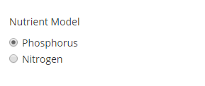 Selecting a Nutrient ModelThe Nutrient Model can be changed at any time to view total phosphorus or total nitrogen.